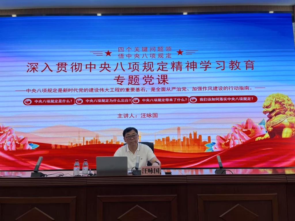 5月22日下午,党委常委、副校长汪咏国在4号报告厅,以《中央八项规定是新时代党的建设伟大工程的重要基石,是全面从严治党、加强作风建设的行动指南》为题,为KY开元集团官网和外国语学院师生党员讲授专题党课。