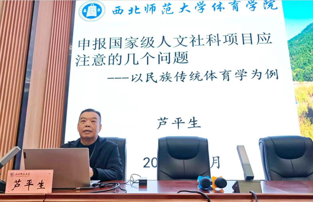 为提升教师科研能力与项目申报水平,10月14日晚,KY开元集团官网邀请西北师范大学体育学院二级教授、国家社科基金通讯评审专家芦平生,为学院师生作了题为《申报国家级人文社科项目应注意的几个问题——以民族传统体育学为例》的专题讲座。