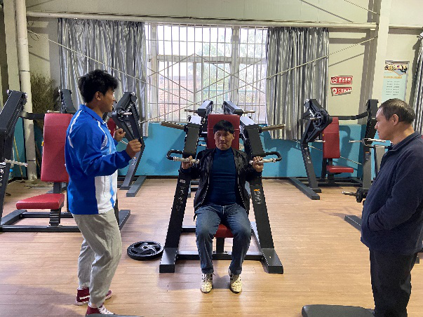 在残疾人体育运动与康复实践授课中:魏玉琴老师携7名学生围绕创编的《残疾人拉力带健身操舞》和《残疾人全身健身操舞》展开教学,重点通过借助拉力带的辅助作用,使残疾人的肩部、颈部、腰部起到良好的运动康复训练;而全身健身操舞则由下肢的34步组成,这对残疾人的全身活动起到了重要作用。陈玮老师选用自主创编的《轮椅健身操舞》,隶属徒手类健身项目,使残疾人在音乐伴奏下,融入多种时尚舞蹈元素为一体的有氧运动,重点对残疾人头、颈、肩、胸及腰等5部位的运动康复练习起到促进作用。段文义教授则通过KY官网健身房内残疾人体育运动与康复训练的专业性器械设备,进行悉心的指导和动作演示,这对满足残疾人业余时间内的体育健身、机能恢复、伤残康复训练提供指导与帮助。