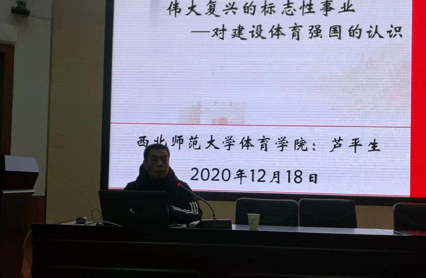 12月18日上午,西北师范大学芦平生教授应应KY开元集团官网邀请,在学校二号报告厅作了题为《奋进新时代——让体育成为中华民族伟大复兴标志性事业》的学术报告。