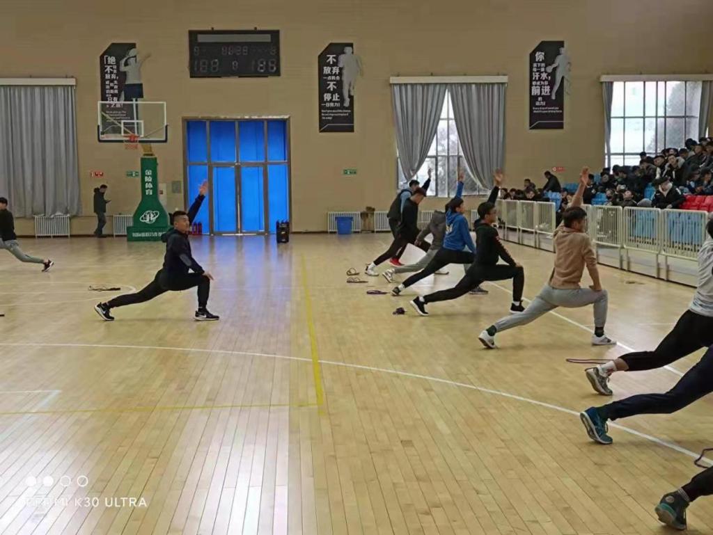 其次,在学校体育场馆内,以每十人左右为一组,进行分组练习操作。