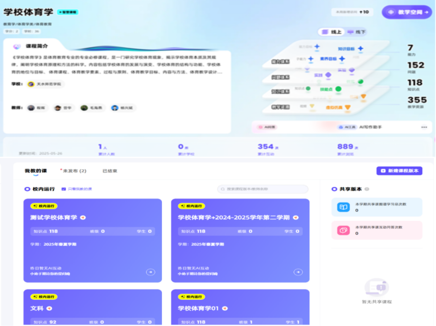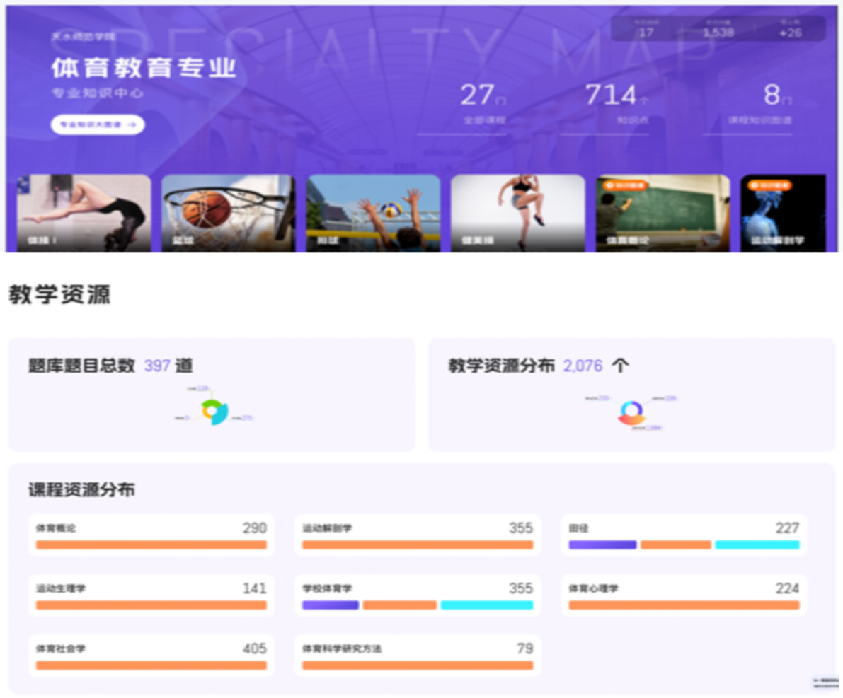 现有甘肃省青少年校园足球发展服务分中心、甘肃省足球教育发展研究中心、甘肃省高校社科人文基地等省级科教平台3个,校级研究平台2个。同时,为推动人工智能与专业人才培养的深度融合,促进教学模式的深层次变革,专业依托智慧树网平台、Deepseek基础大模型,创建了“AI+知识图谱”数字化平台——甘肃省首个体育教育专业知识创新中心,构建了“能力目标—问题场景—知识体系—教学资源”AI四维教学模型,同步提升教师数智化教学能力与学生创新实践素养。